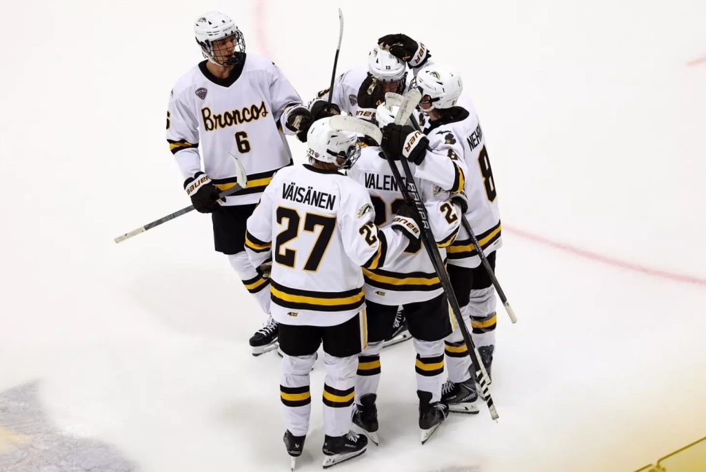 Maine is up one to No. 6, Providence is up two to No. 7, Quinnipiac moves up five to sit eighth, Michigan, with the last first-place vote, is up three to No. 9, and North Dakota moves up one spot to sit 10th in this week’s rankings.